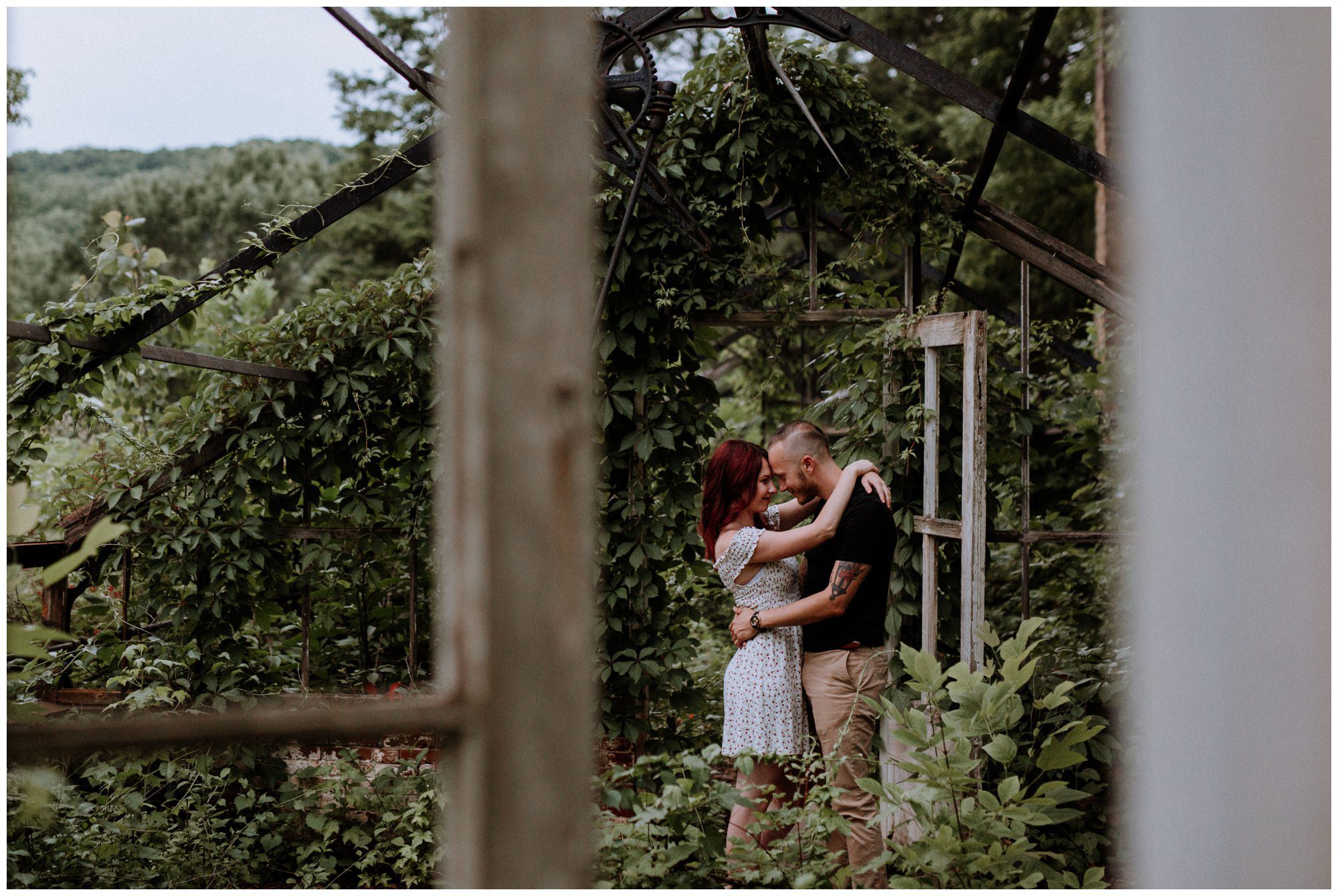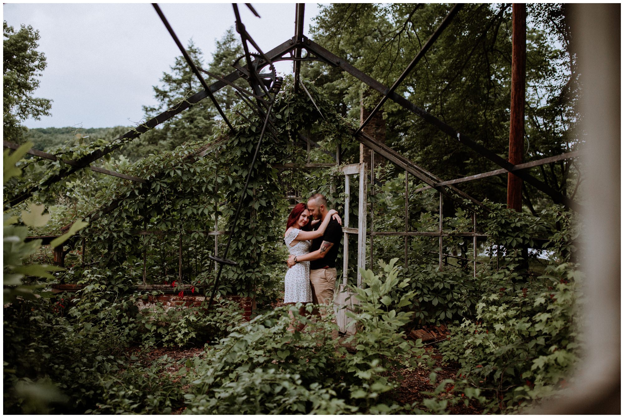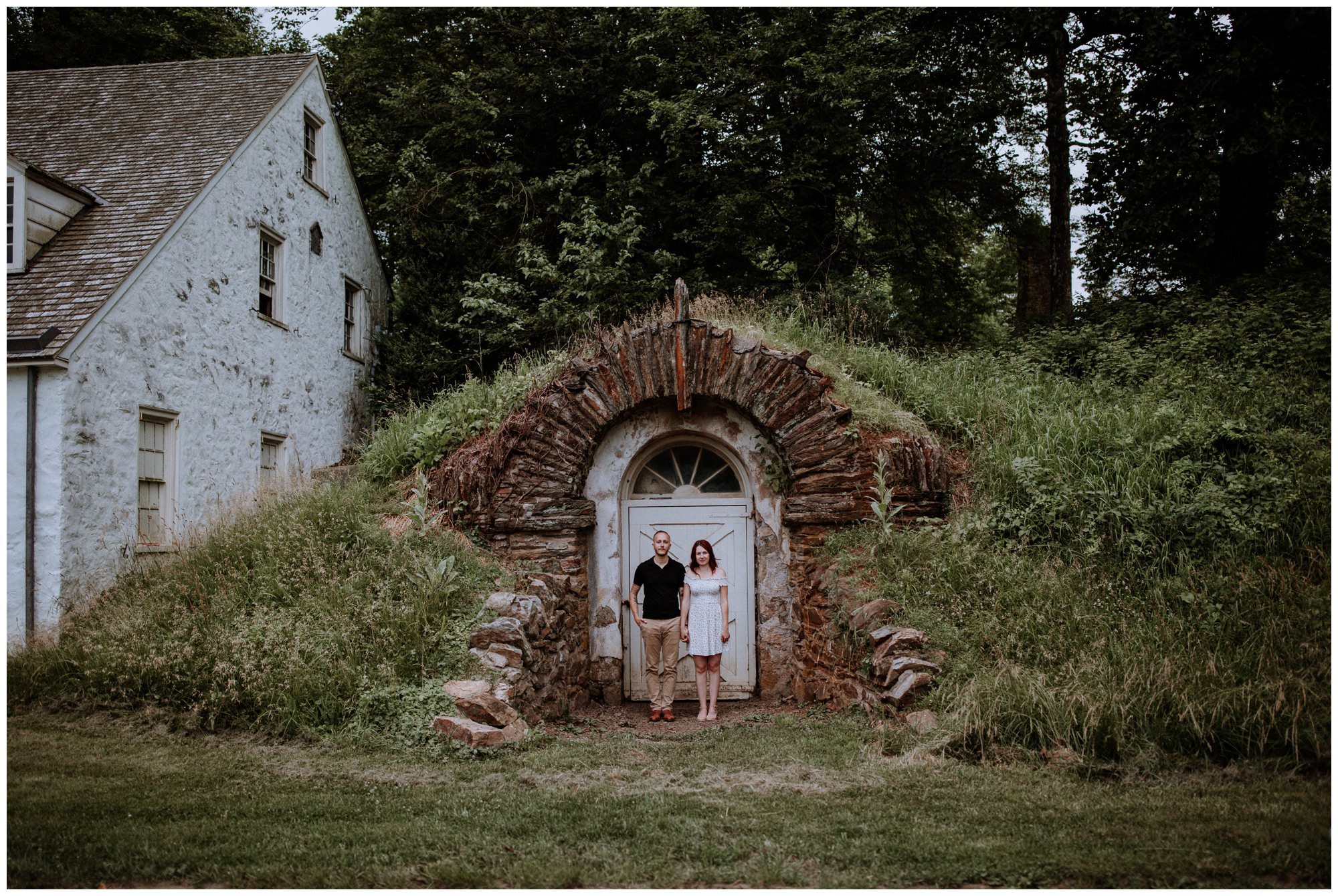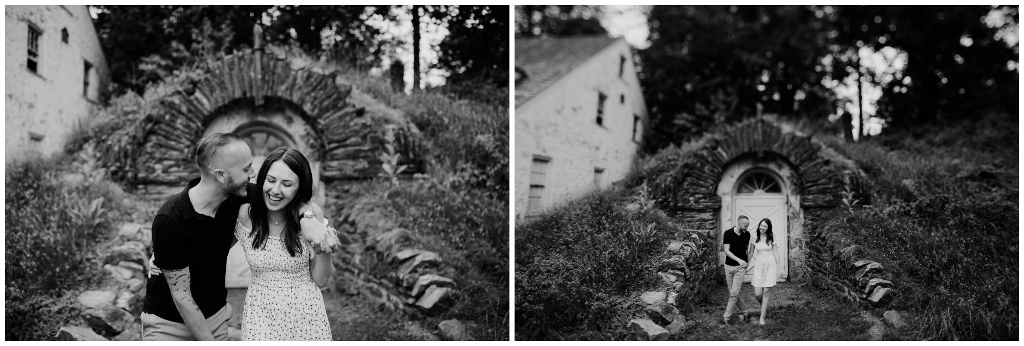 We had a great time getting to know Sara + Chris, as well as their pup Cora! I think the Philander Chase Knox Estate has basically everything that a photographer could ask for. We could honestly do an entire shoot in the overgrown greenhouse on the property, but throw in the perfect field of grass and wildflowers, the stream meandering through the woods nearby, and the random hobbit door and you have a recipe for the perfect engagement shoot.