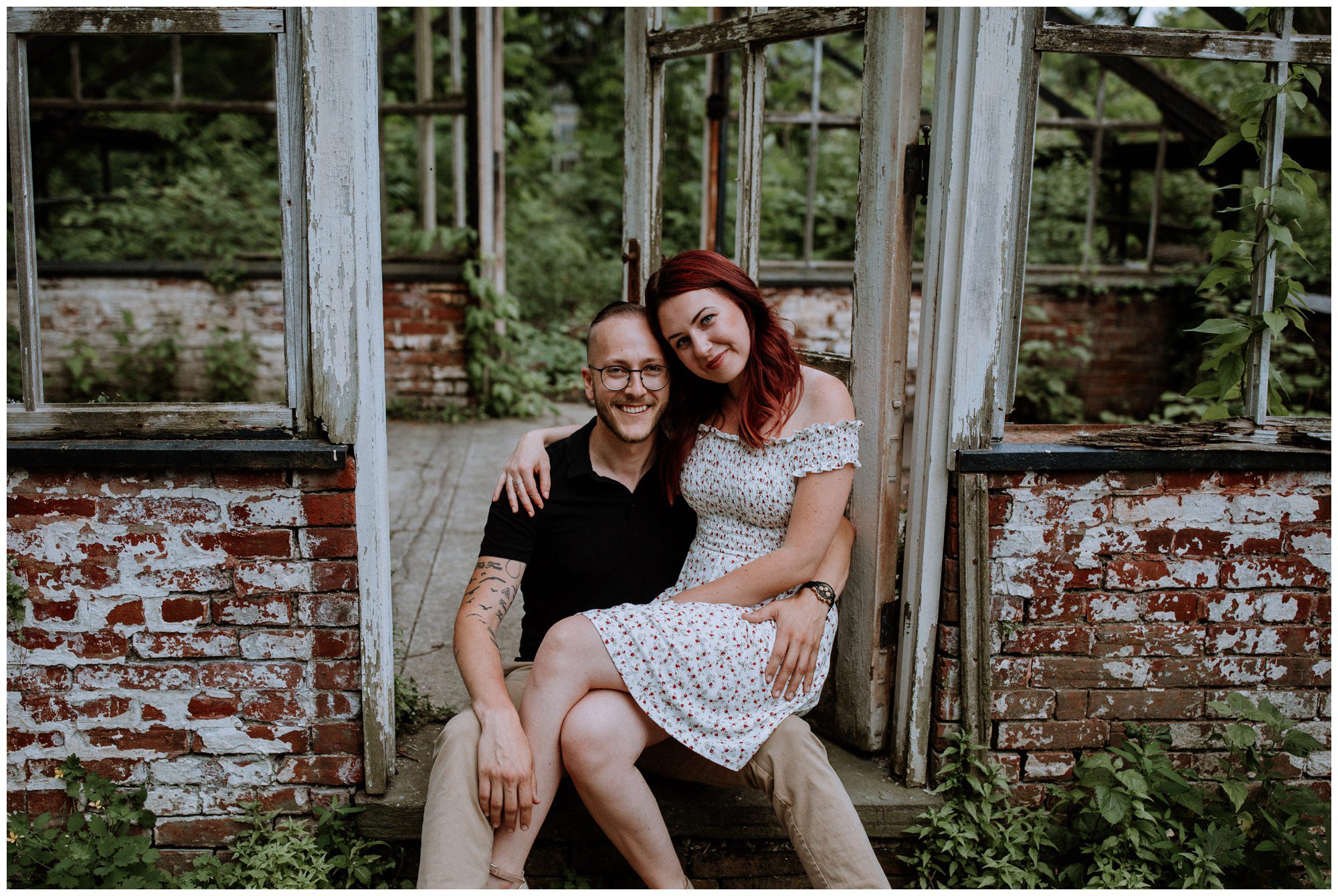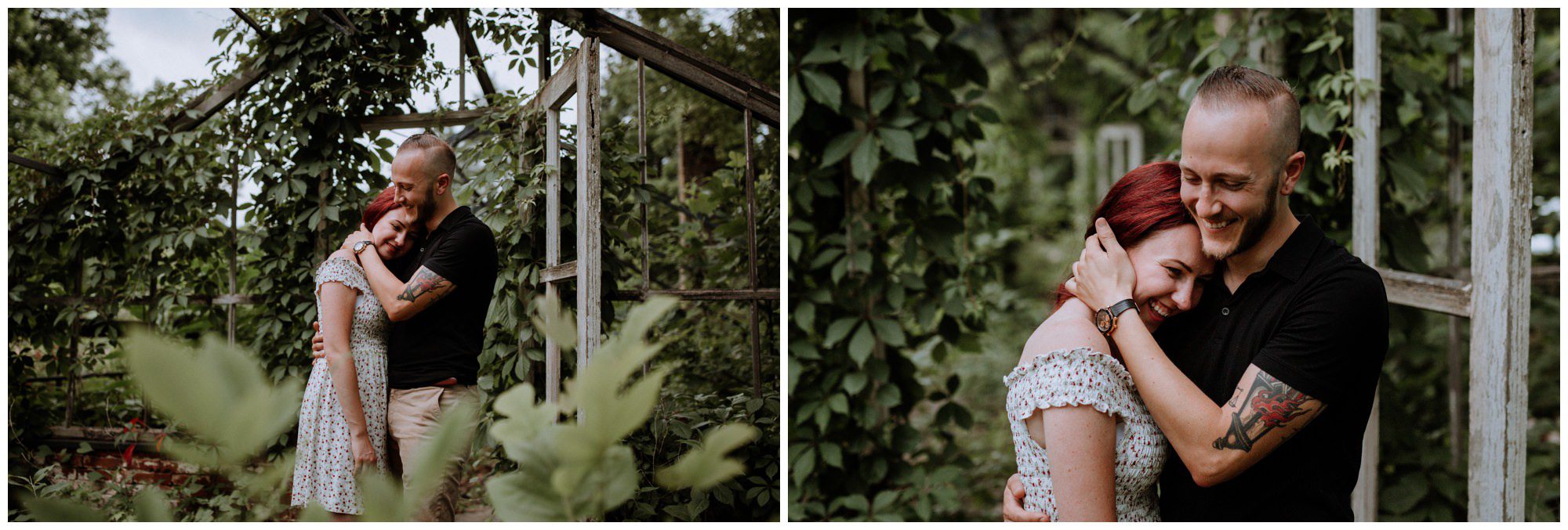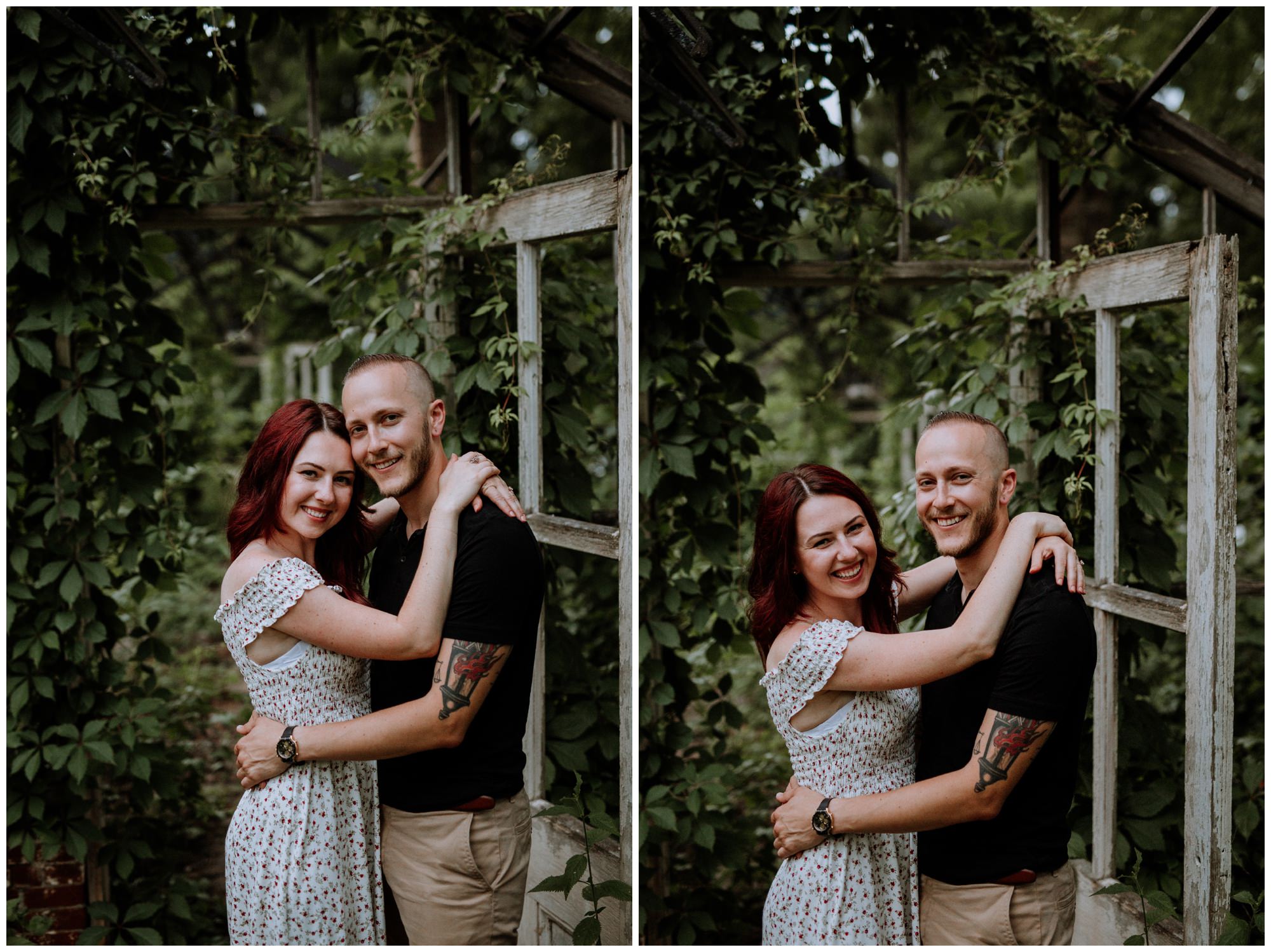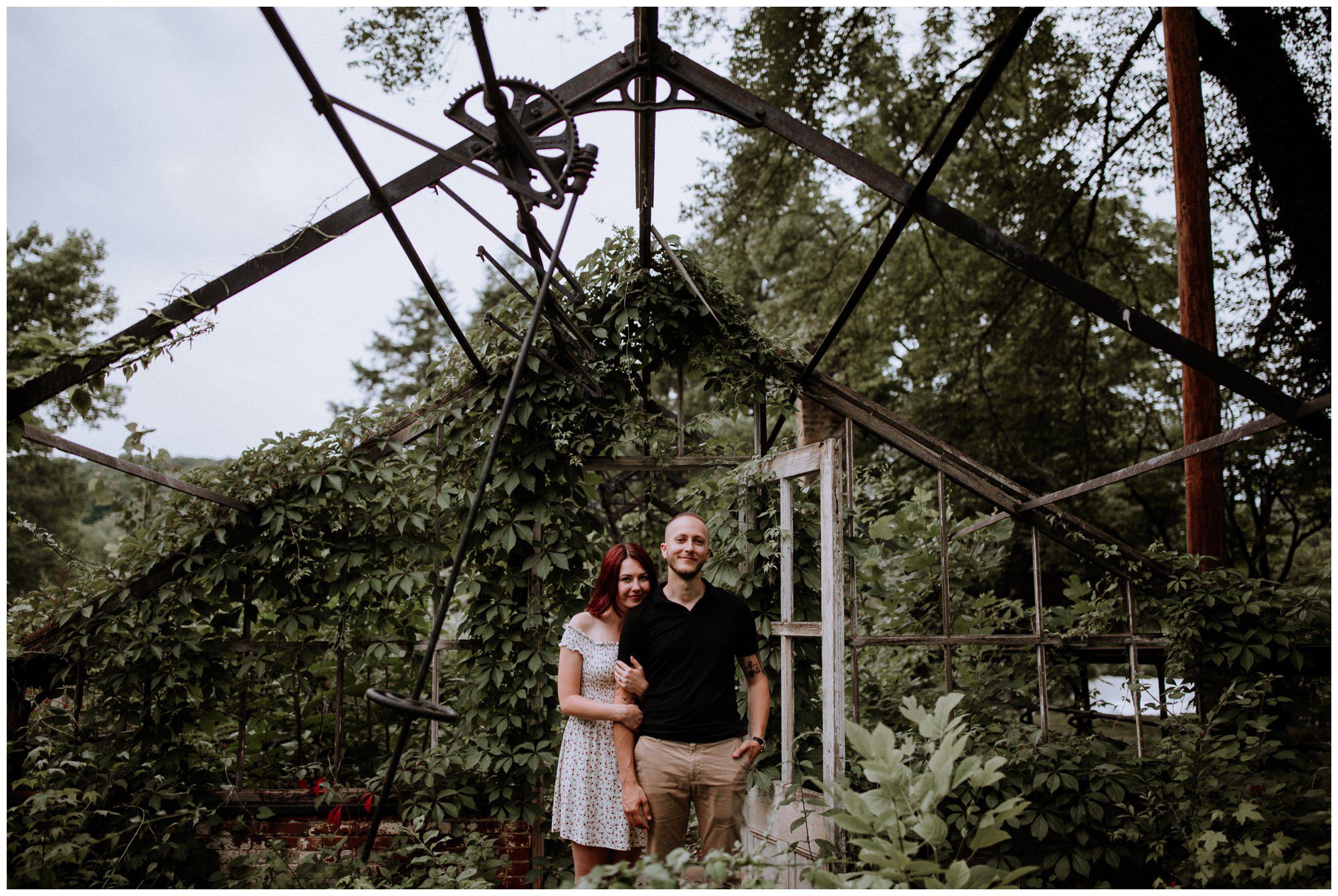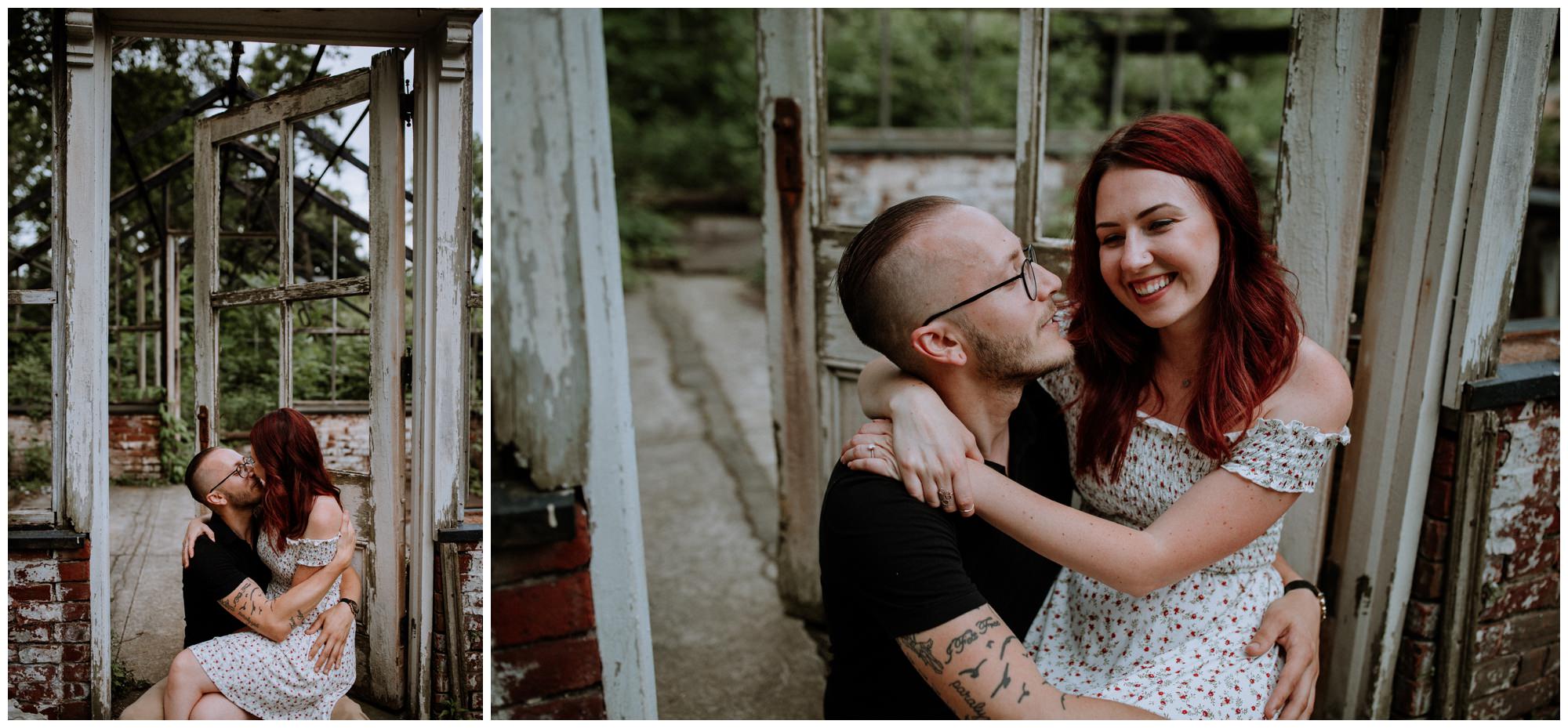 We had a great time getting to know Sara + Chris, as well as their pup Cora! I think the Philander Chase Knox Estate has basically everything that a photographer could ask for. We could honestly do an entire shoot in the overgrown greenhouse on the property, but throw in the perfect field of grass and wildflowers, the stream meandering through the woods nearby, and the random hobbit door and you have a recipe for the perfect engagement shoot.