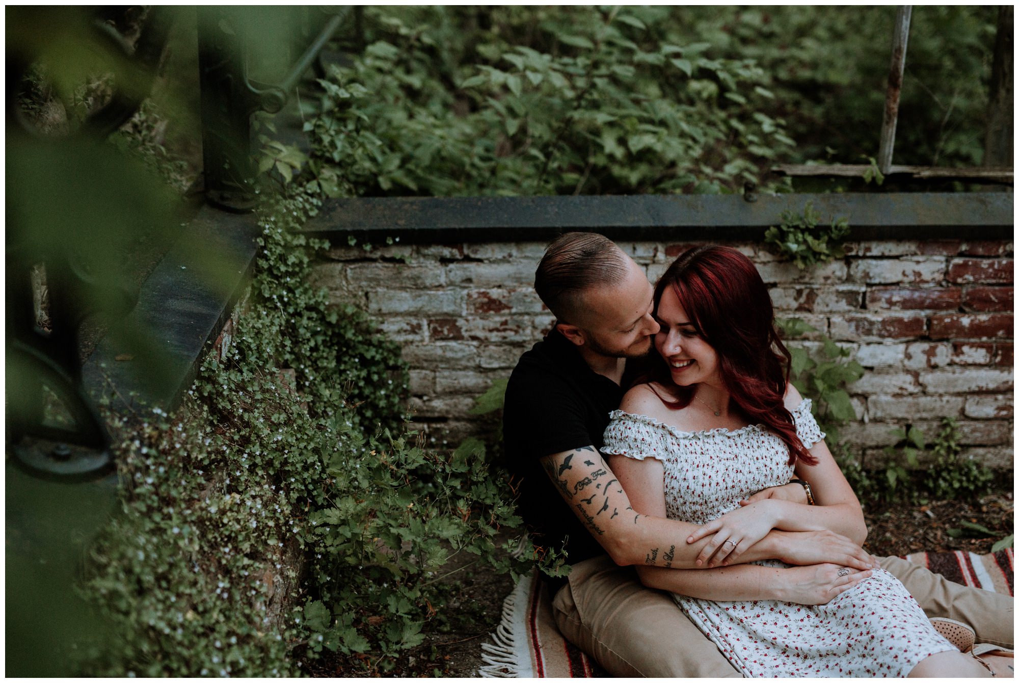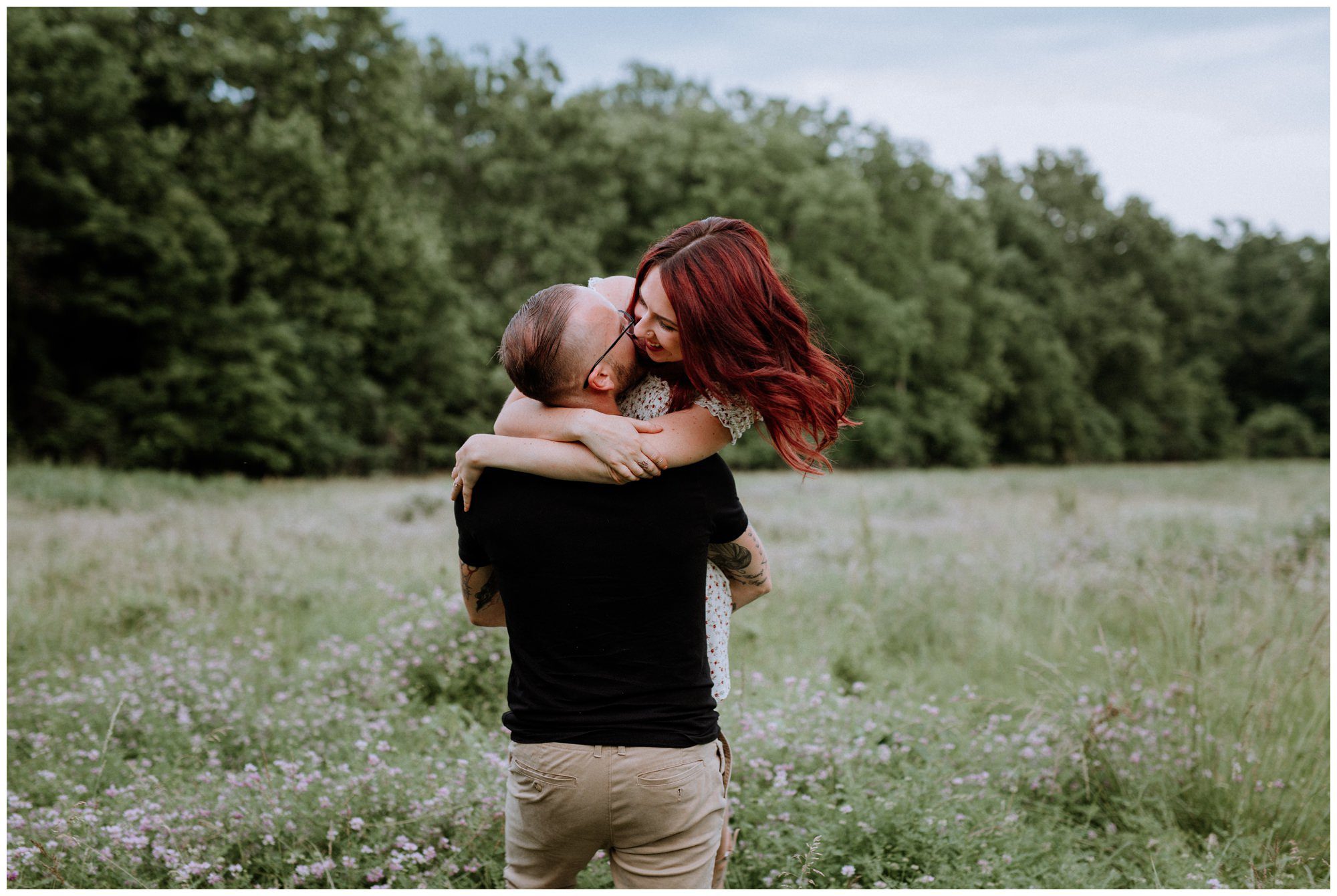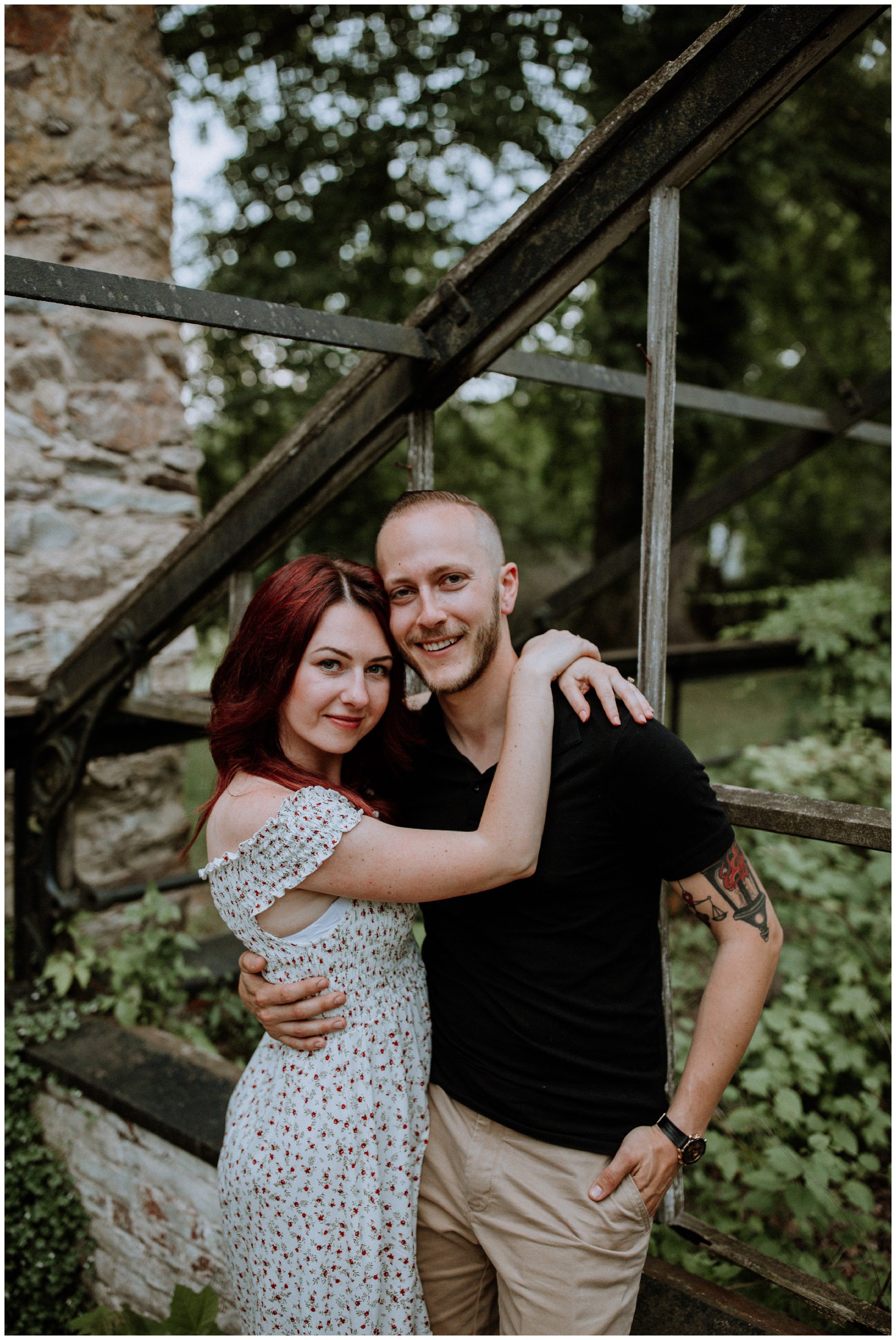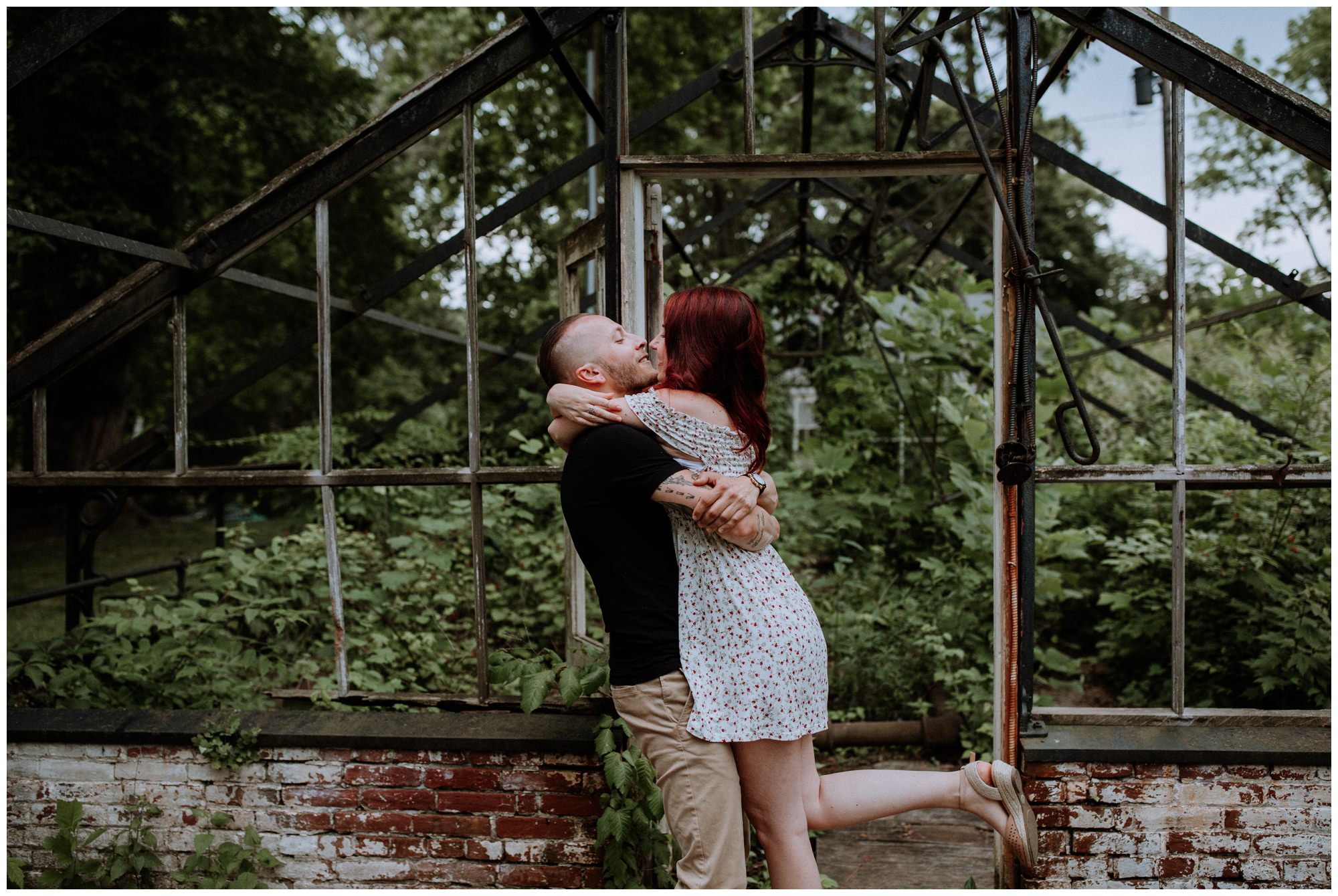 We had a great time getting to know Sara + Chris, as well as their pup Cora! I think the Philander Chase Knox Estate has basically everything that a photographer could ask for. We could honestly do an entire shoot in the overgrown greenhouse on the property, but throw in the perfect field of grass and wildflowers, the stream meandering through the woods nearby, and the random hobbit door and you have a recipe for the perfect engagement shoot.