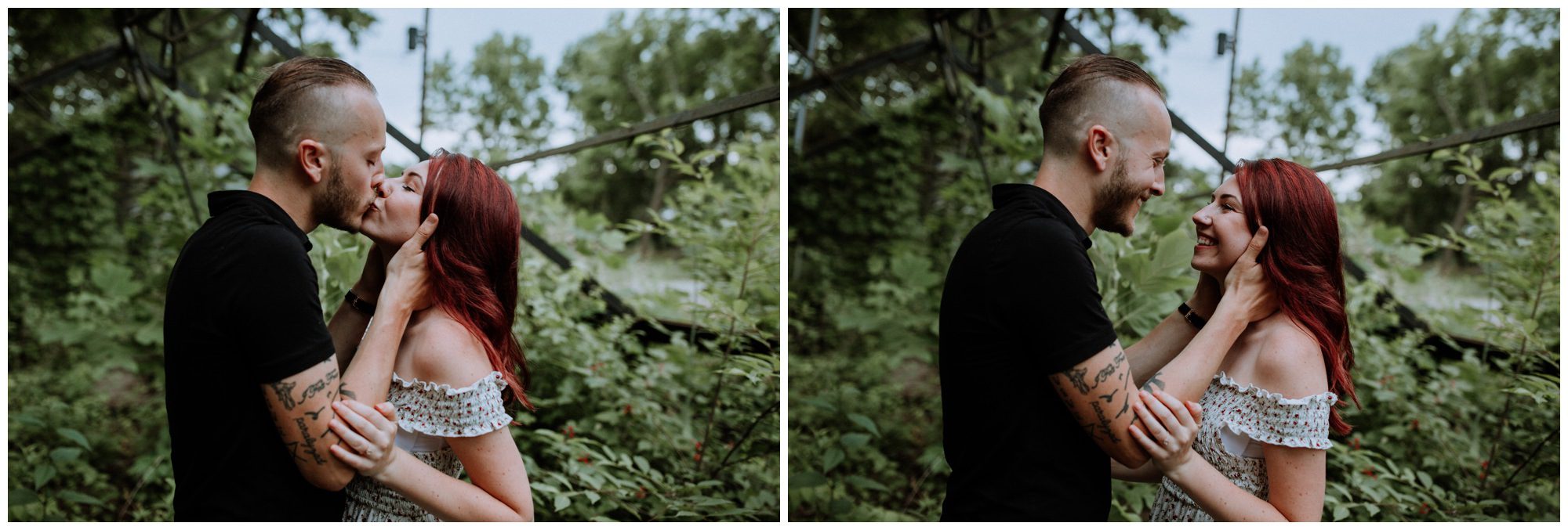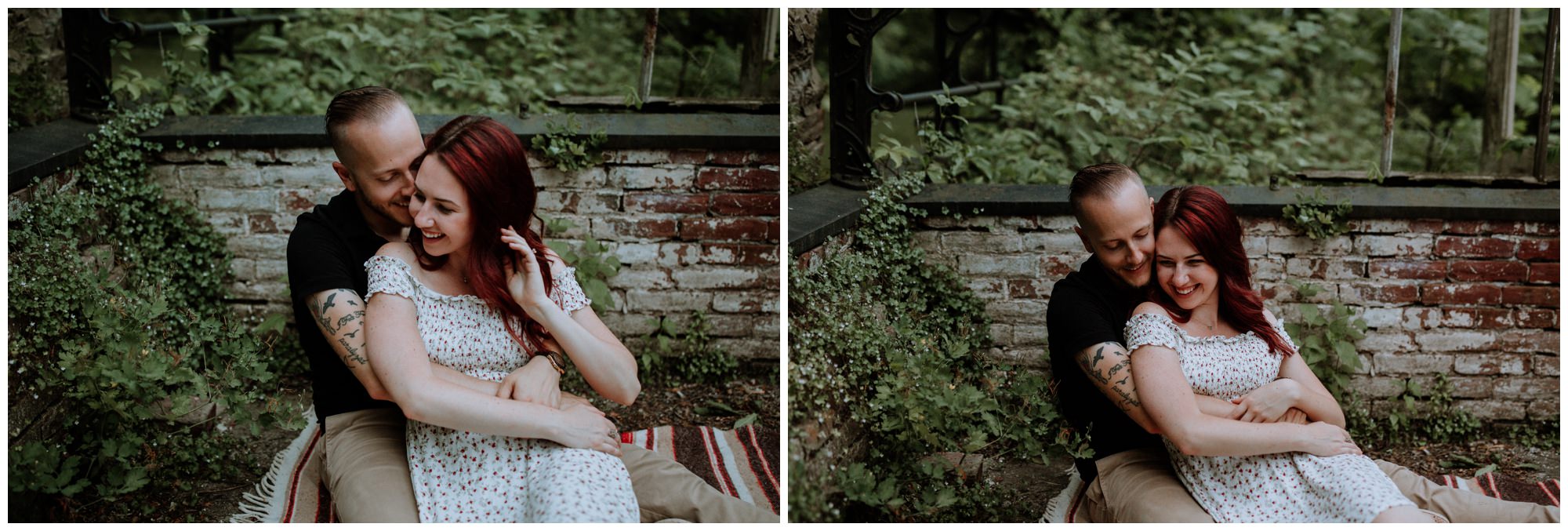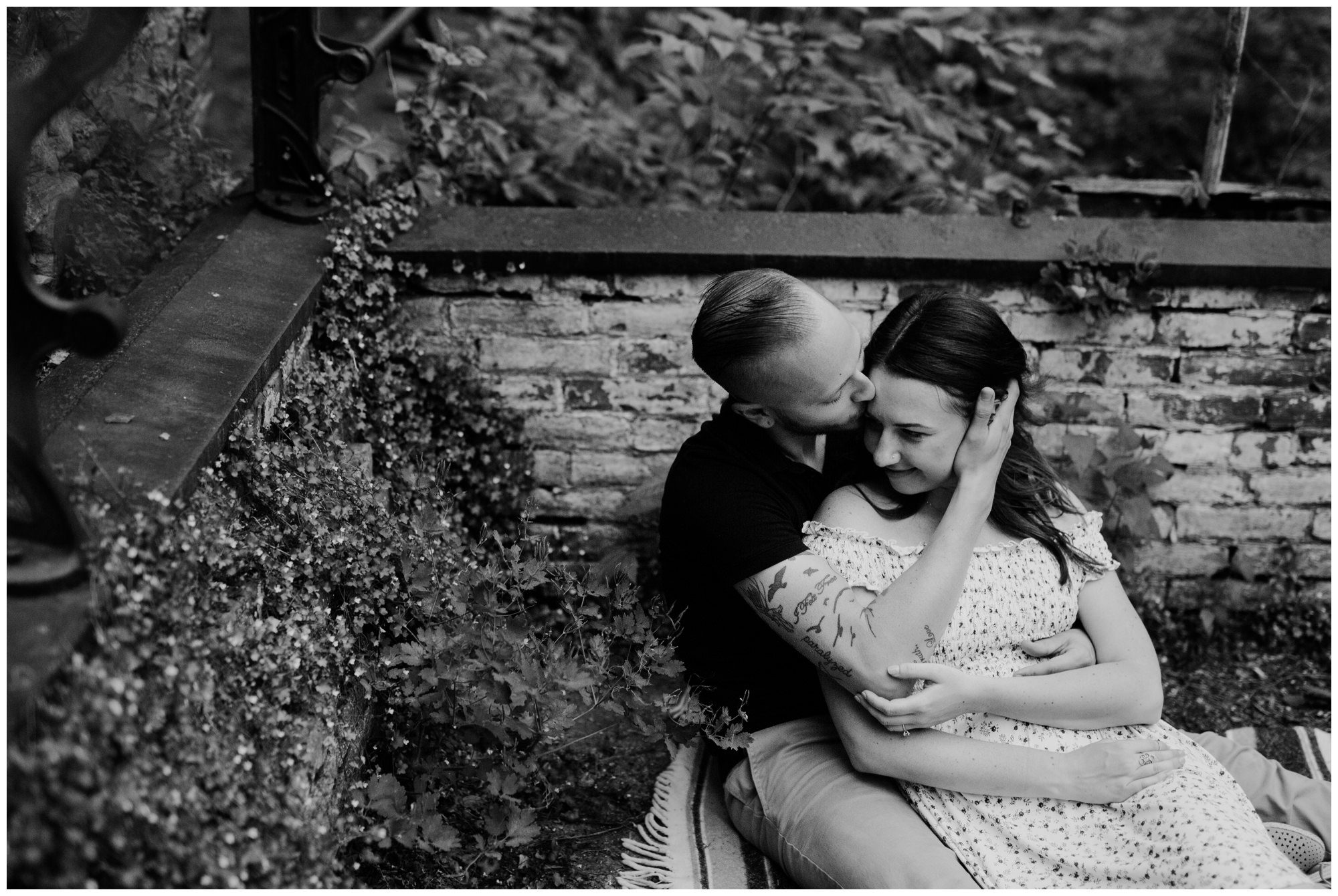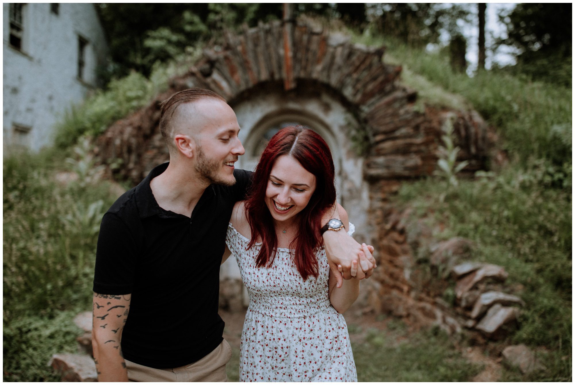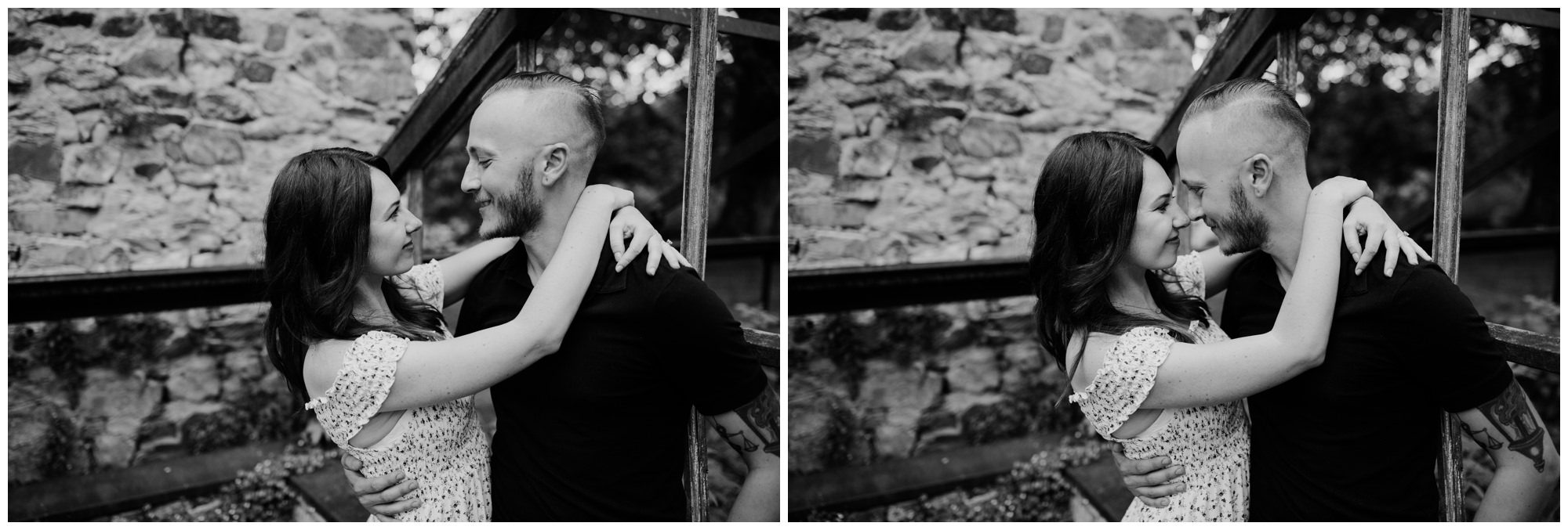 We had a great time getting to know Sara + Chris, as well as their pup Cora! I think the Philander Chase Knox Estate has basically everything that a photographer could ask for. We could honestly do an entire shoot in the overgrown greenhouse on the property, but throw in the perfect field of grass and wildflowers, the stream meandering through the woods nearby, and the random hobbit door and you have a recipe for the perfect engagement shoot.