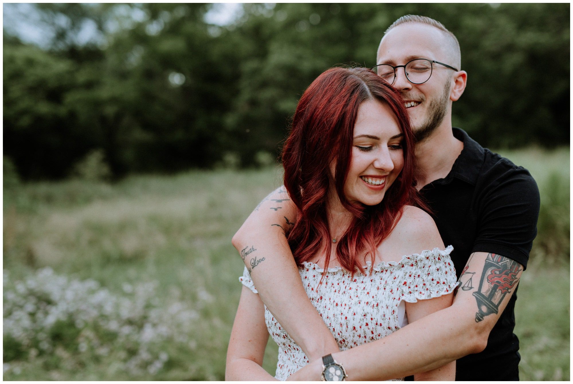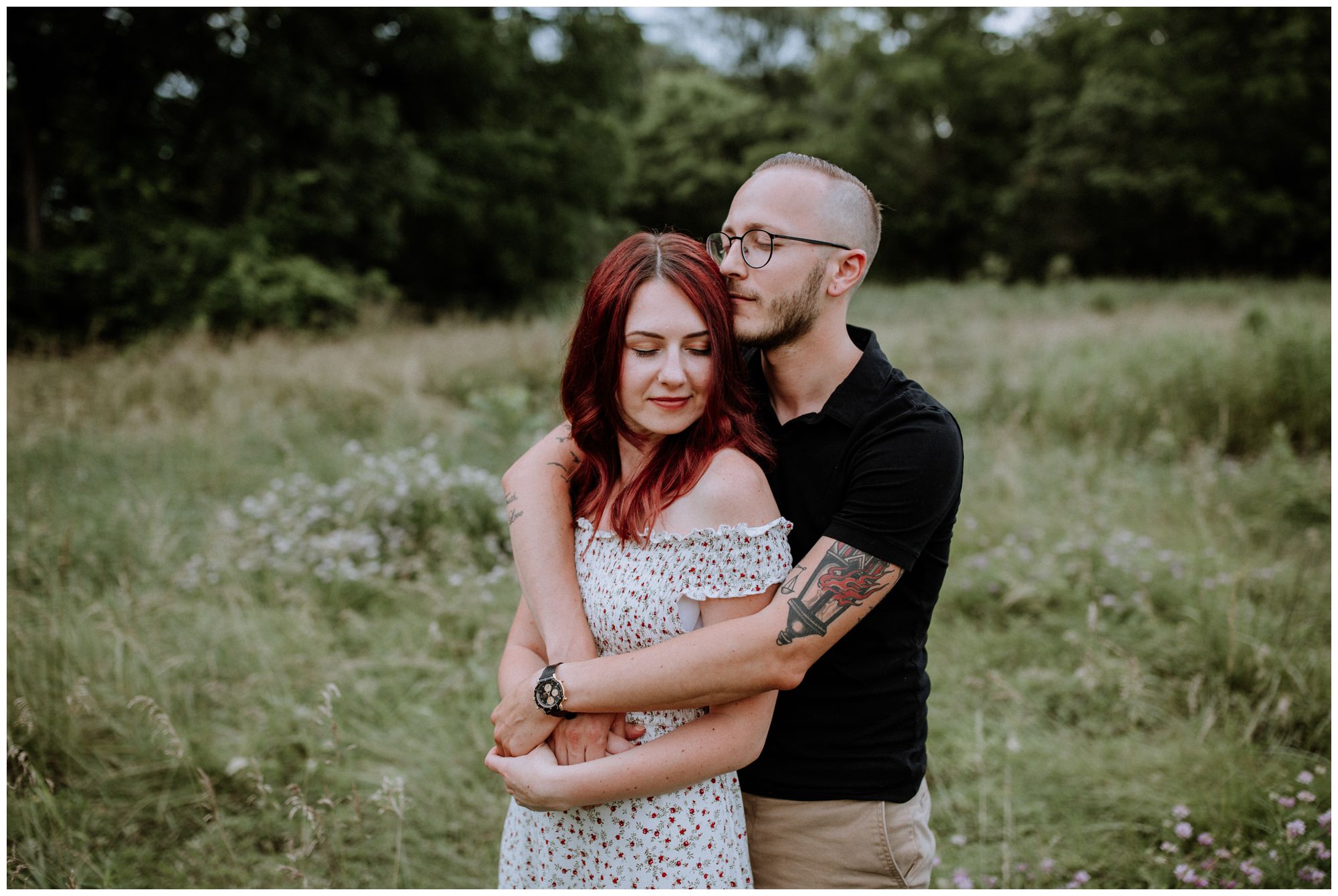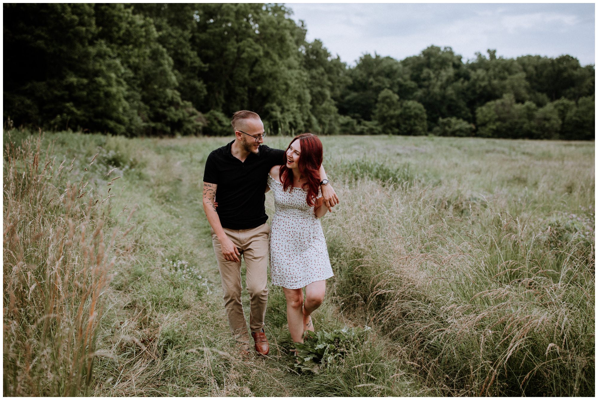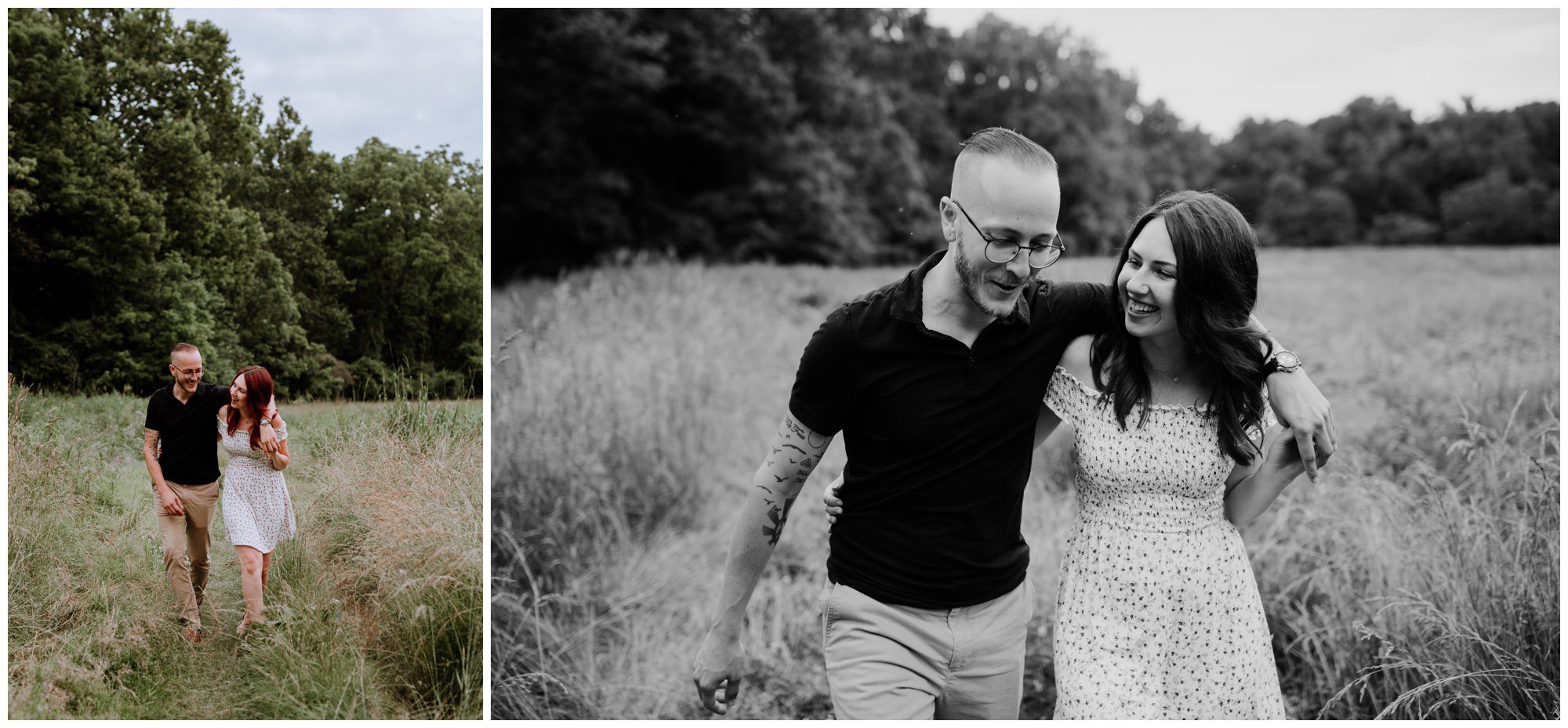 We had a great time getting to know Sara + Chris, as well as their pup Cora! I think the Philander Chase Knox Estate has basically everything that a photographer could ask for. We could honestly do an entire shoot in the overgrown greenhouse on the property, but throw in the perfect field of grass and wildflowers, the stream meandering through the woods nearby, and the random hobbit door and you have a recipe for the perfect engagement shoot.